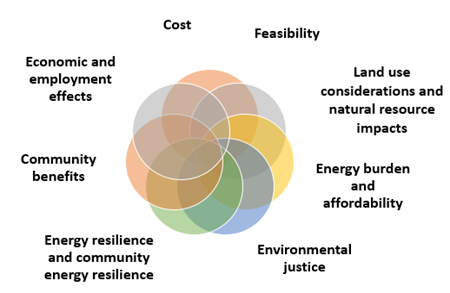 In evaluating the complex interactions between the energy sector and these considerations, it is critical to identify approaches that maximize benefits while minimizing risk. Processes must also be equitable and follow the four pillars of energy justice described in the Equity and Environmental Justice Framework section to reduce disparities and bring along communities who have been left behind. Investing in the energy transition requires a recognition of areas where trade-offs exist and to navigate choices with as much information and transparency as possible. For example, tensions frequently exist between development of needed energy infrastructure and protection of natural and working lands, waters, and ecosystems. The energy transition is an economic transition and will create shifts in job and career opportunities and losses. In developing pathways, policies, and actions, ODOE has worked to recognize these tensions and to seek solutions that maximize positive effects while minimizing and mitigating negative impacts.